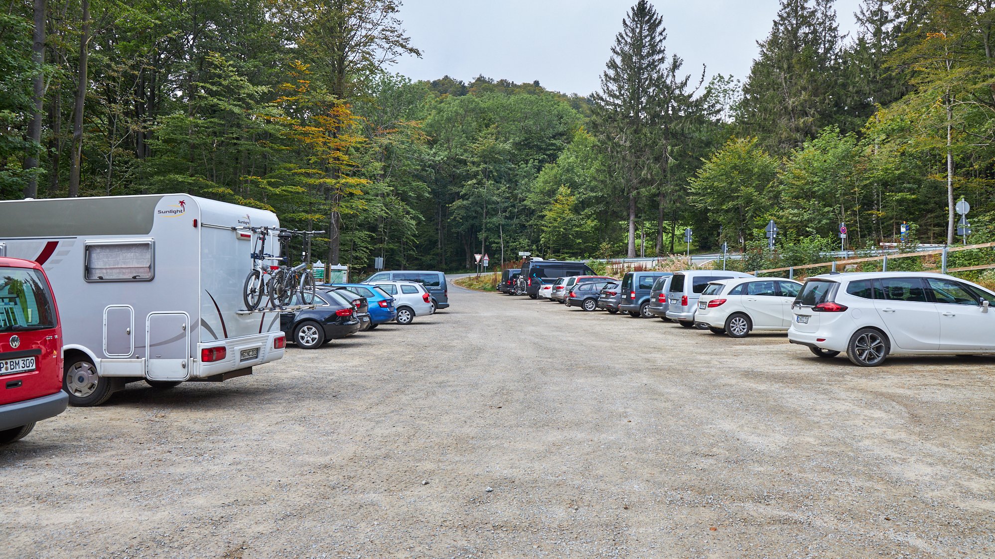 Zurück am Parkplatz ist der nun deutlich voller geworden, aber nach dem Nebel und Regen von heute früh sieht es jetzt auch deutlich freundlicher aus.