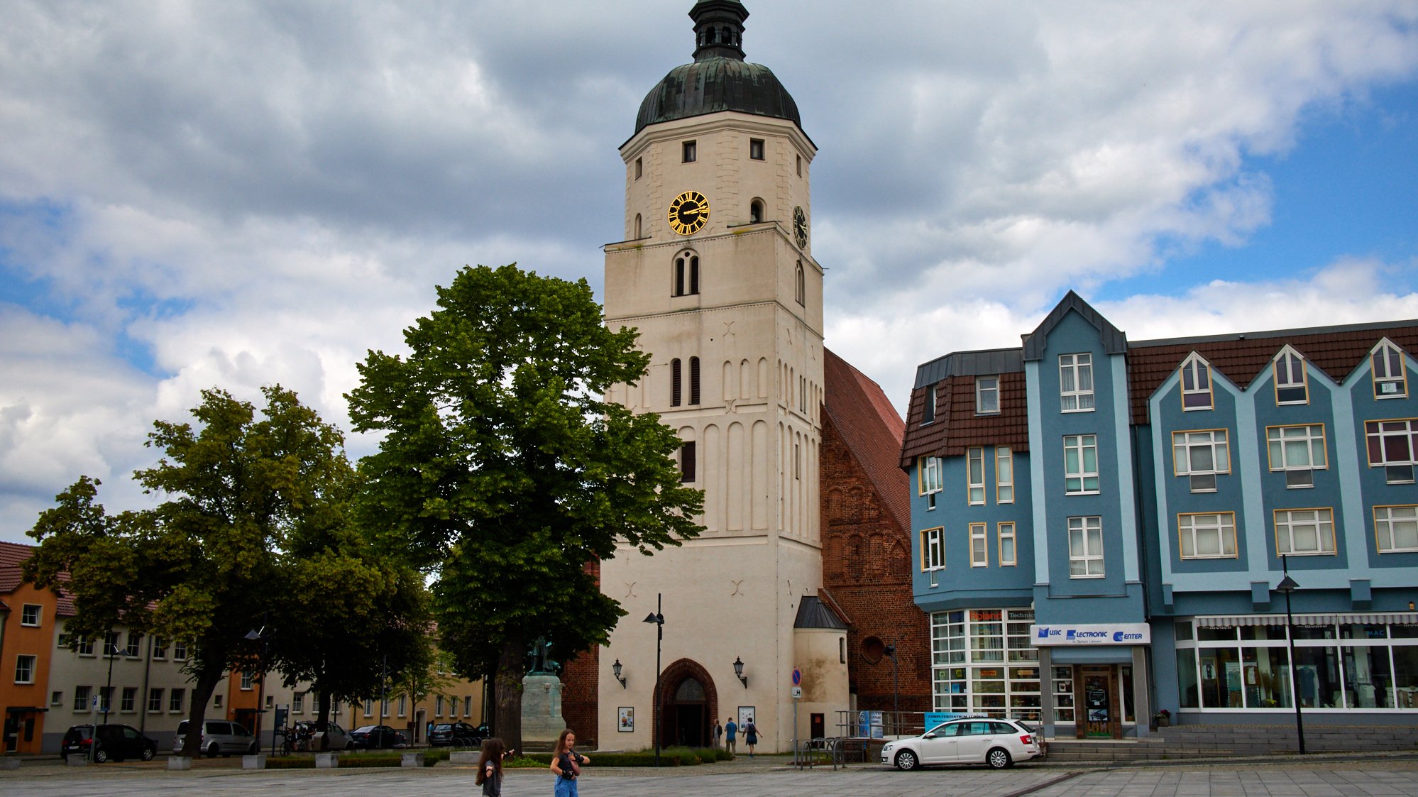 Direkt gegenüber der Schlossinsel stehen die letzten Reste der alten Stadtmauer. Durch das Tor geht es weiter durch die Gassen zum Markt. Durch die Landstraße ist die Altstadt ziemlich Abgeschnitten vom Trubel am Hafen, hier geht es deutlich ruhiger zu. Lübben wurde im Krieg zu einem Großteil zerstört, nur wenige alte Häuser sind noch in der Altstadt erhalten.